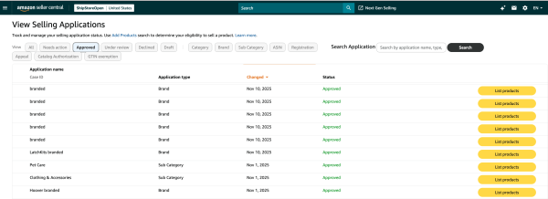 During the Saturday Openhouse I mentioned I was approved for many products. Now I want to list them and went to Seller Central. But I saw this in my Approval List. (See screenshot attached).