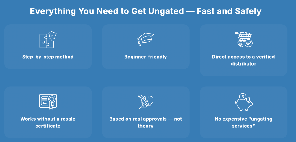 Struggling to get ungated? Get the Internet Mastery Seller Blackbook™ and discover the exact steps, suppliers, and processes to get approved fast. Add on the Trusted Supplier List and 1,500+ Auto-Ungate List for immediate results!